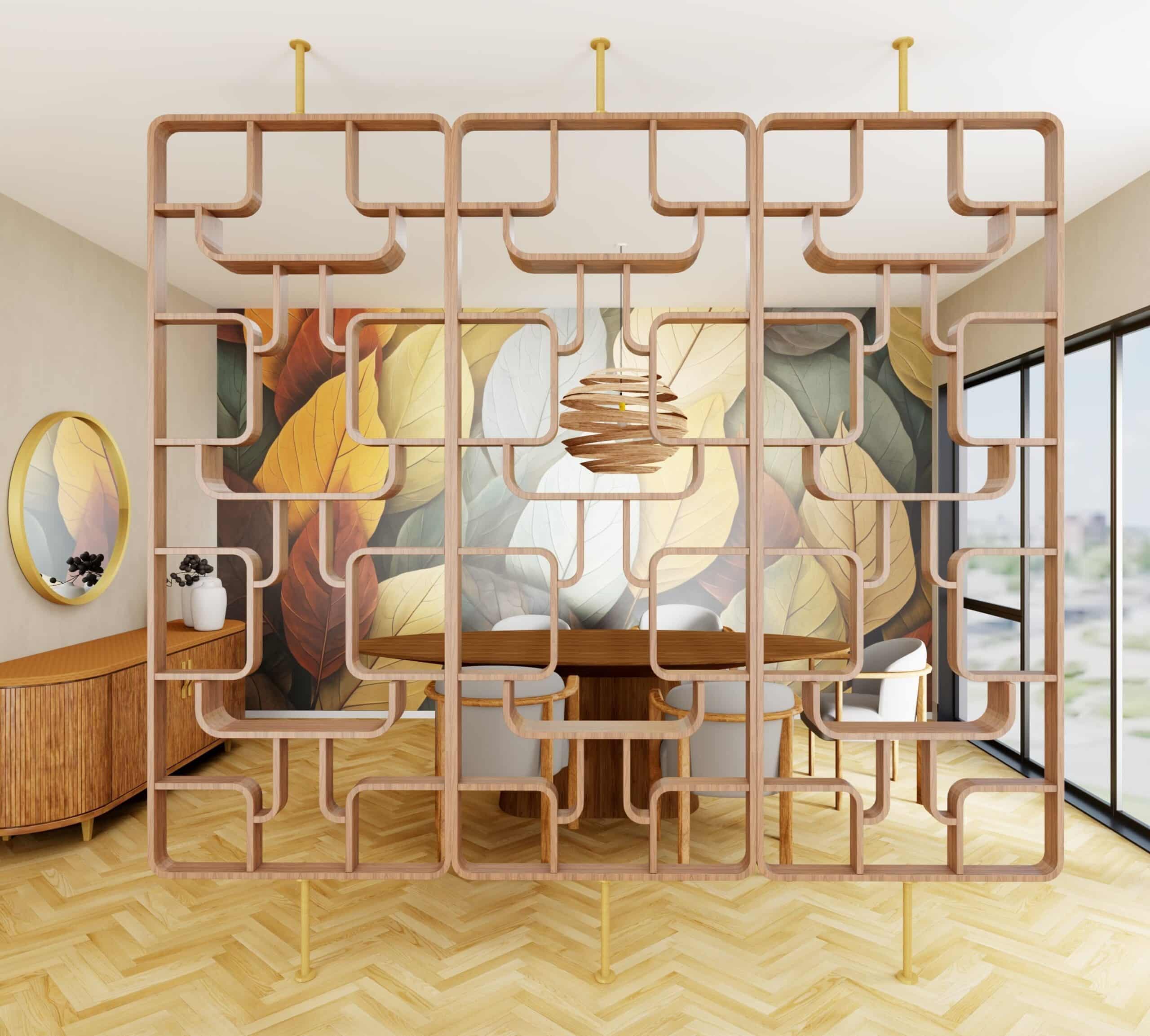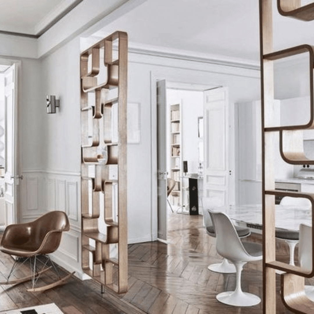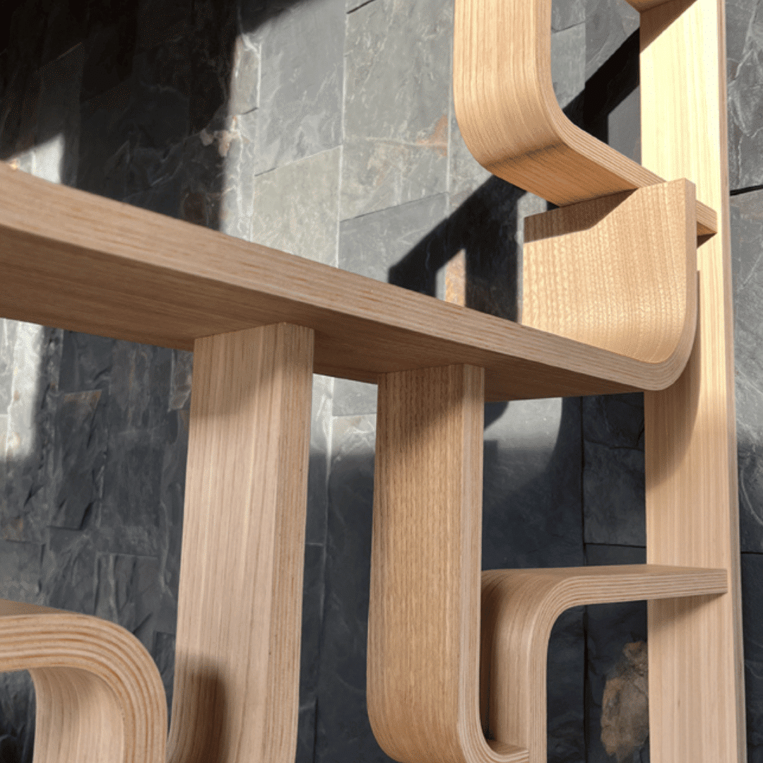 Uniwersalna ścianka sprawdzi się jako przepierzenie, dekoracja czy regał. Współczesna wersja ręcznie wyprofilowanego drewna. W całości stworzona ze sklejki, dopieszczone i wyszlifowane do satyny w każdym łuku konstrukcji przez polskich rzemieślników i pasjonatów drewna.