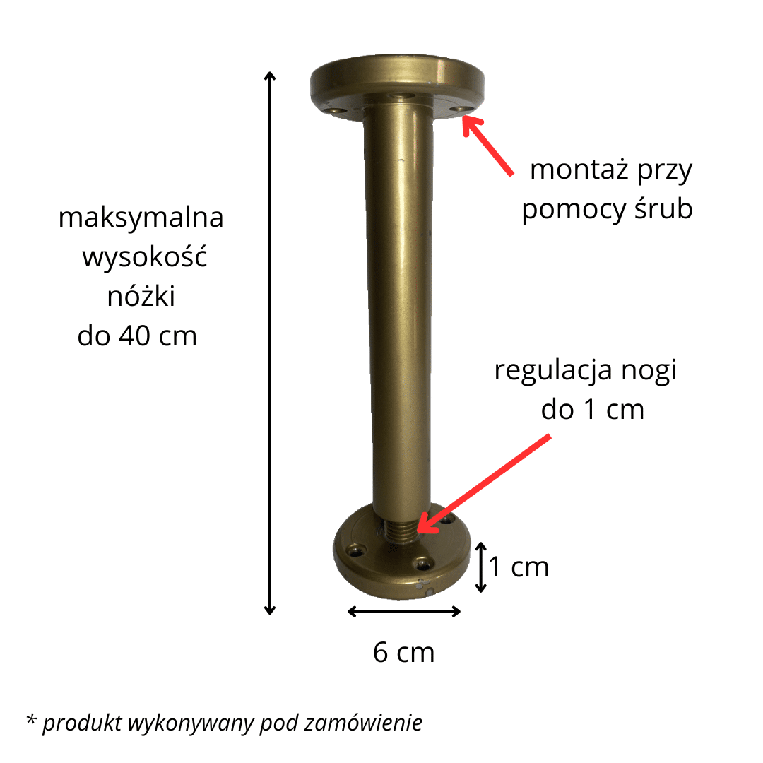 Montaż : W podstawach nóżek  znajdują się otwory na śruby, które umożliwiają łatwy montaż na suficie i podłodze. Wszystkie niezbędne elementy montażowe są dołączone do zestawu.