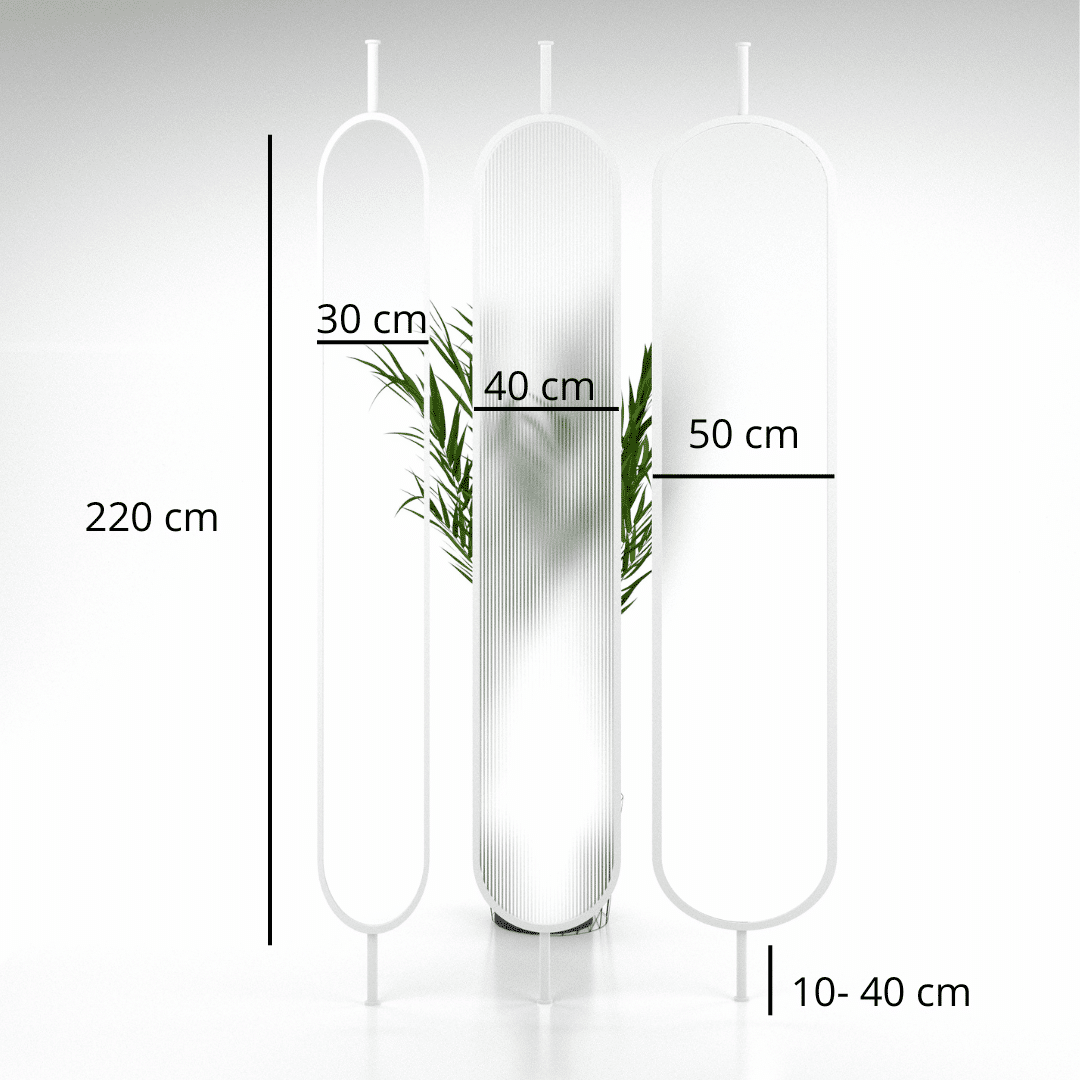 Parawany nordyckie: o w  trzech matowych kolorach do wyboru: czarnym, białym oraz złotym ( RAL 1923). Możliwości dostosowania wysokości parawanu nóżkami max do 300 cm.